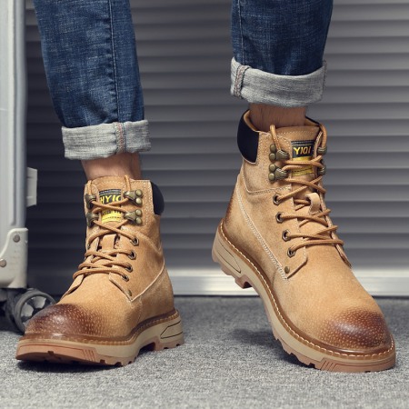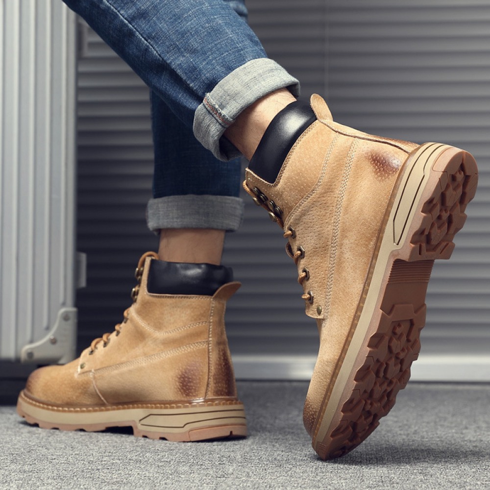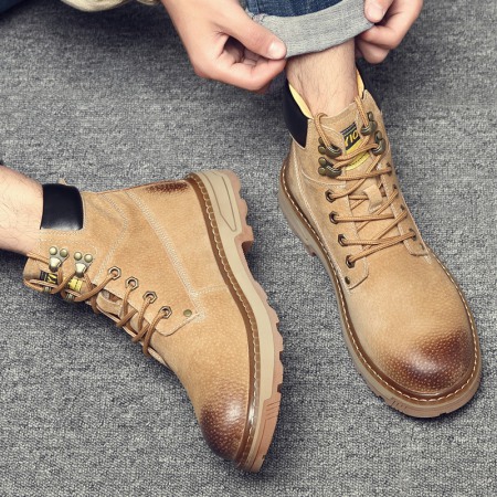 Men's Martin Boots New Leather Boots Casual Mid-Cut Boots High-Top Men's Shoes